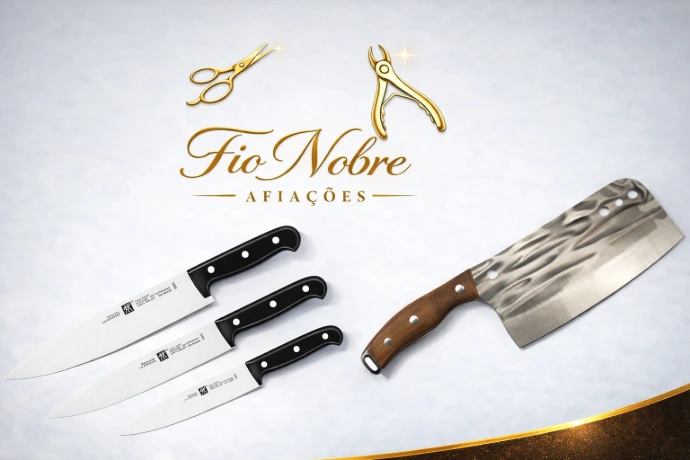 Realizamos afiação precisa em facas domésticas, facas profissionais e cutelos, devolvendo o corte eficiente, segurança no uso e maior durabilidade ao fio.